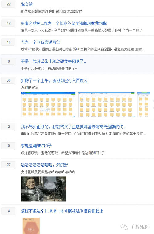 今日在“游民星空”百度贴吧,关于盗版的话题不断