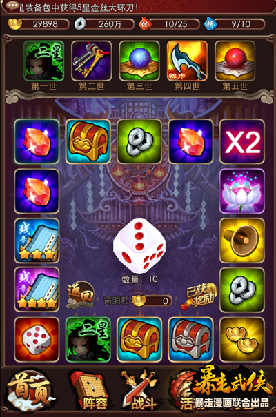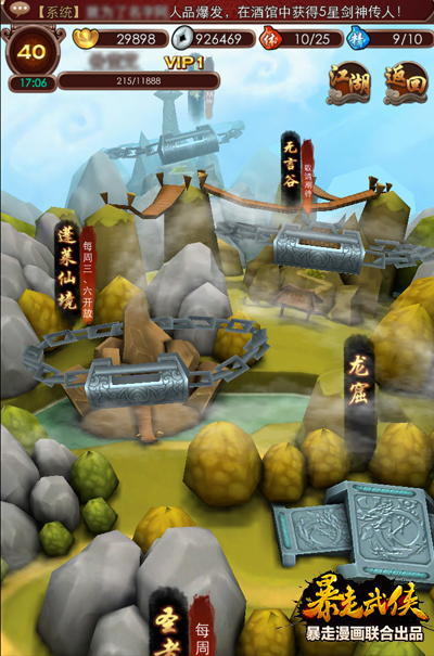 关于副本,自打有卡牌游戏后就流传着这么句话:抽弟子必定毁三代,天天刷副本,必成高富帅!因此《暴走武侠》中的宗师副本一定要刷起来,不仅有各种极品武功残章,更有五星以上的极品装备!即使没有那些大R的豪华阵容,我们非R依然可以凭装备、等级碾压!