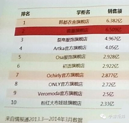 同时在各大媒体关于淘宝和天猫上的相关报道,女性的消费能力在淘宝上是高于男性,而其中2013年3月至2014年3月的天猫销售榜上来看,店铺交易量排行前10名的店铺清一色全是女装品牌。
