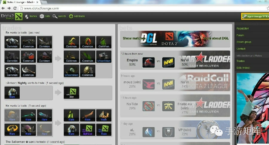 比如像《DOTA2》这款PC端电竞游戏,其延伸出的博彩产业不可谓不发达,国外的dota2lounge这个网站正是看准此契机,开发了一套完整的饰品博彩系统——要知道《DOTA2》的稀罕饰品在玩家之间可以直接兑换成真金白银。而在手游领域,自身具备交易系统的产品目前也有不少,多集中于APRG或回合制这类重度类型。