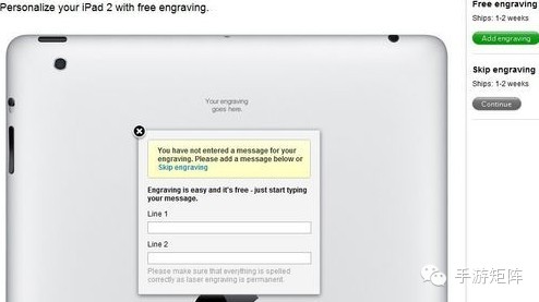 几个月前矩叔给女朋友订了一本iPad,朋友告诉矩叔,iPad背面可以刻字,嗯,这是个浪漫的主意,于是矩叔进入提交刻字的界面,然后看着满屏英文,拥有丰富经验的矩叔在第一行填下:martix_team@163.com,第二行填下:19772823****,咦,这好像不是填帐号密码的地方……