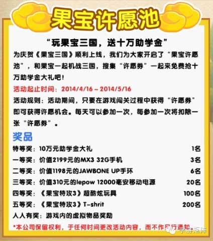 嗯?这位小朋友,你说木有手机?没关系,你可以玩你爸爸妈妈的手机啊~什么?你上次因为强化青龙偃月刀把你爸爸的话费刷爆了,你妈妈因此打不通他电话怀疑鬼混去了?哦,那没有关系,你还可以叫你爸爸妈妈给你爷爷奶奶外公外婆换新手机啊,这是应该的~~然后你还可以指着上面的“助学金活动”说:“你们要支持我拿助学金哦!”妥妥的~
