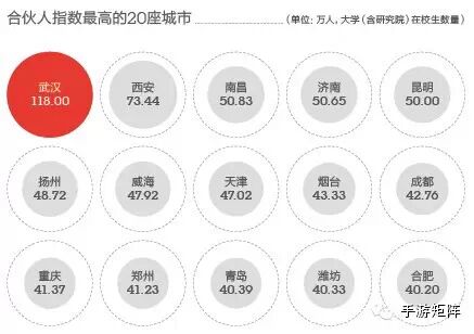 在《第一财经周刊》文章中,武汉以118万在校大学生的数量排在了榜单的第一位,由此也有投资人称到:“武汉这座城市有超过100万的大学生,所以高校学生的创业氛围特别好。”