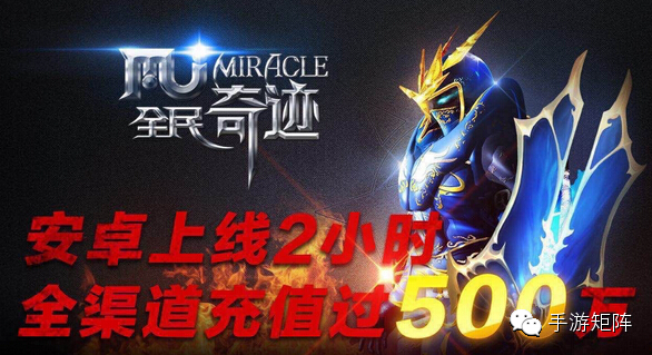 安卓上线2小时,全渠道充值过500万,10万新增。