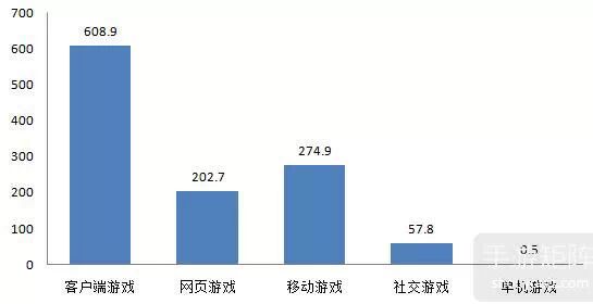 按游戏类型划分,端游收入608.9亿元,网页游戏收入202.7亿元,移动游戏销售收入274.9亿元,社交游戏57.8亿元,单机游戏0.5亿元。其中,移动游戏销售收入首次超越页游。