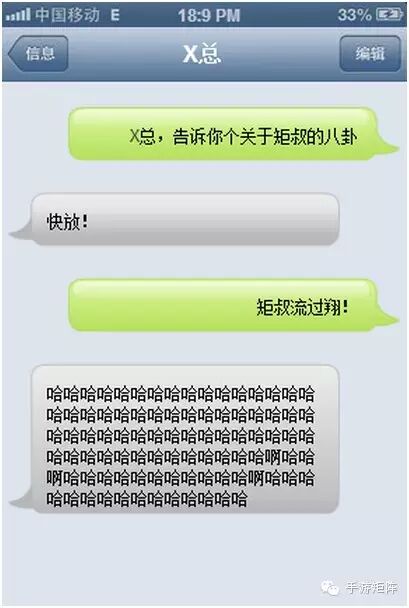 强子:“呵呵,到底流是没流!矩叔你承认了我也不会笑话你的,正所谓人有三急嘛。”