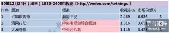 首先,1月1日复播后的《武媚娘传奇》收视率也并没有受到太大的影响。数据来源于CSM34以及卫视50城收视率。
