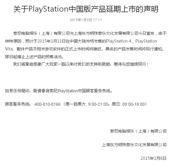 2015年1月8日,索尼宣布国行PS4延后发售,矛盾开始全面爆发……