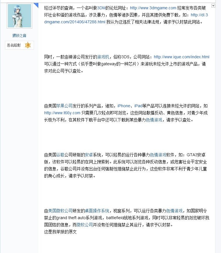 从苹果到谷歌再到国内的游戏渠道,只要是和游戏有关的平台、媒体或企业,都被他们举报了个遍。但让人不得不承认的是,举报的理由都或多或少说得过去。