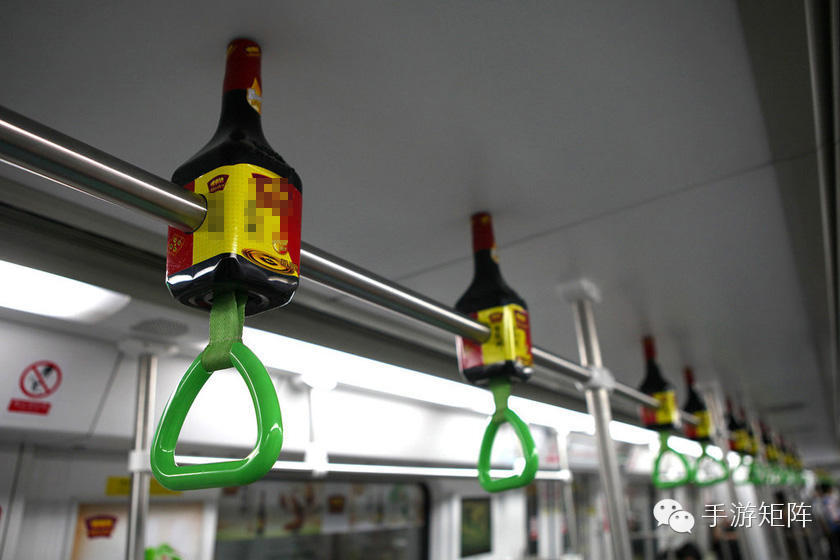 扶手广告现在运用得比较多,也是一些乘客比较津津乐道的东西,不过扶手位置较高,放置二维码的效果不一定好,但是品牌肯定是到位了的。一把可以结合游戏的特色来包装,比如《锁链战记》可以用锁链的效果来包装扶手。