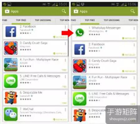 在全球各发达国家的市场被两大巨头搜刮完毕后,它们的目光同时都落在了庞大的中国市场上。只不过不同于两者的路线各不相同:苹果是在中国区增设定制页面、开启银联支付、游戏大幅降价等,做的所谓是“民心工程”;而谷歌做的各种调整则是对广大开发者和厂商(特别是手游)形成短期且直观的搜索广告影响,用手游行业的话来说就是“给你一个合法的榜去刷”。