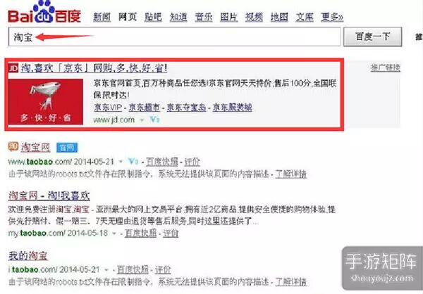 效果大致类似于百度搜“淘宝”出个“京东”在第一位
