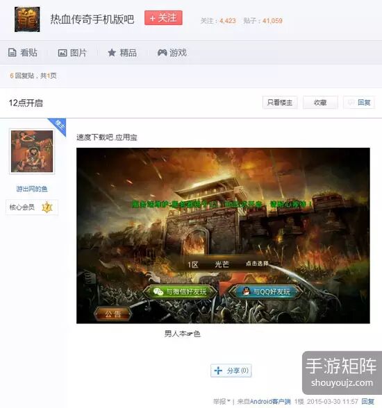 盛大《热血传奇》的手游版正在腾讯应用宝中开始发布,而在此截图上,可以看到除了腾讯的微信和手Q两大分发渠道之外,再无其它的登录方式,如此看来,腾讯UP中公布的“1.76”很有可能就是盛大的金字招牌《热血传奇》的手游版。为了确认截图真伪,矩叔也用手机拿到一个客户端来测试,果然在里面只有腾讯的登录方式。