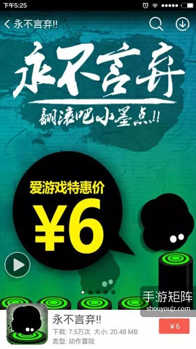 《永不言弃》是由Invictus推出的一款节奏游戏,于2014年圣诞节前上架iOS,没想到这一上架便受到了来自玩家的追捧,迅速攀升至付费榜第一名。2015年2月春节前,《永不言弃》在中国区同样升至付费榜前十,随后几天之内便升上付费榜第一,然后至今一直在付费榜前五。