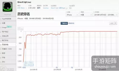 其实和传统音乐类游戏来比较,传统的音乐游戏更在乎的游戏的打击感和节奏感,光光抖腿并不能说明这款游戏在音乐节奏上面的突出。虽然离春节已经过去了很久,不过《永不言弃》的排名依然长期徘徊在top5之内,这也说明单单靠发布的时间节点并不是让这款产品在榜单上面维持这么久的原因。