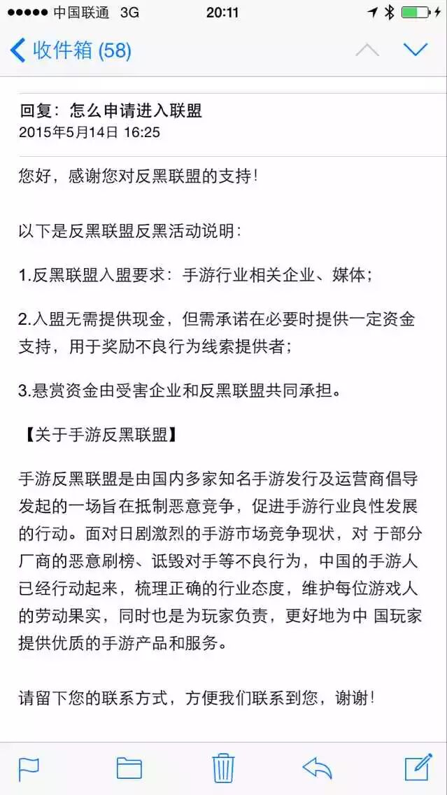1) 反黑联盟入盟要求:手游行业相关企业、媒体;