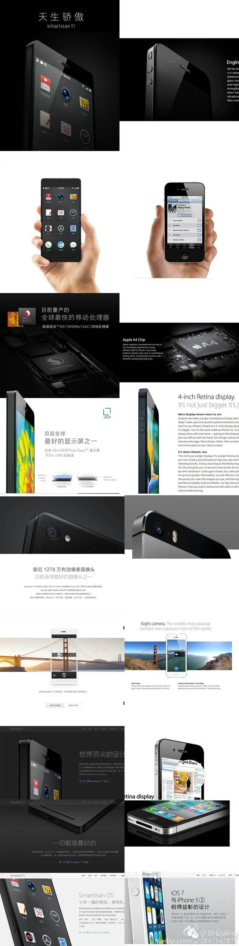 首先是配置问题,Smartisan T1 采用高通骁龙 801 8x74AC 四核处理器,它是目前量产的全球最快的移动 CPU 处理器。