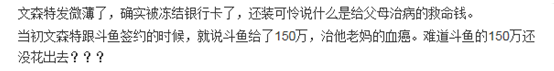 此则新闻一出,众多网友众说纷纭。有的表示支持斗鱼,认为这次法律手段的实行,给整个直播行业起到了一次强有力的震慑效果。而作为事件的被告人之一文森特,在事发之后,屡次提及自己家境贫寒,父母身患血癌,斗鱼这样做是夺走了他的救命钱。文森特面对危机,主打亲情牌,以弱示人,然而效果如何?