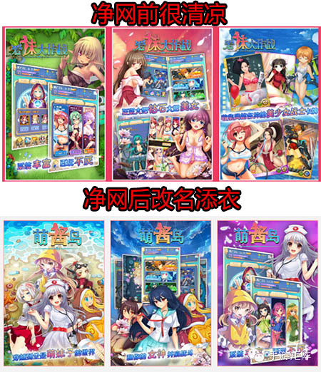 日前,文化部发布了第20批违法违规互联网文化活动黑名单,被点名的企业包括豌豆荚在内的14家手机游戏平台,以及趣游科技集团有限公司等8家网游公司,违规游戏产品包括“苍老师打飞机”、“蹂躏女优”等41款。于是我们发现,各个游戏中心推荐的游戏icon和名字从充满挑逗变为保守内敛,就连曾经矩叔评测过一款卖肉手游也从豌豆荚、360下架了,后来仔细一找发现改名字啦。