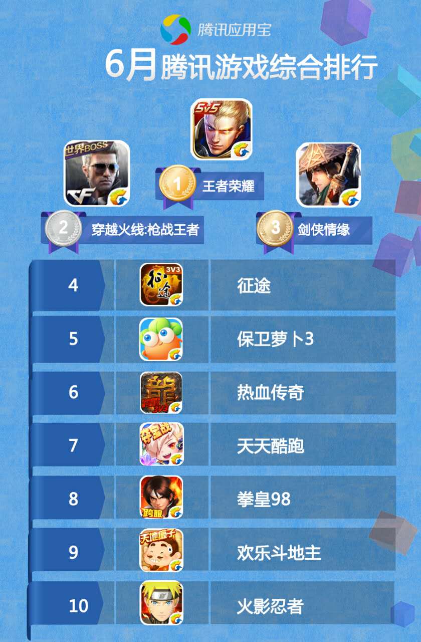 6月腾讯游戏排行榜