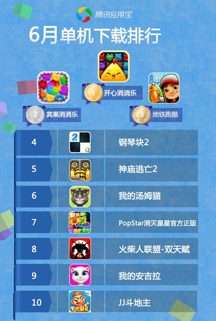 应用宝6月单机排行榜