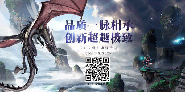 11月4日,蜗牛游戏全新悬念站神秘上线,巨龙和弓箭手的游戏主形象在云端山涧的宏大背景下相对而立,设下了十足的悬念。悬念站以“品质一脉相承,创新超越极致”为题,带来了“2017年蜗牛旗舰手游coming soon”的消息。从蜗牛游戏鲜有的设立悬念站的举动来看,预示着2017年一款重磅级的手游产品即将问世。