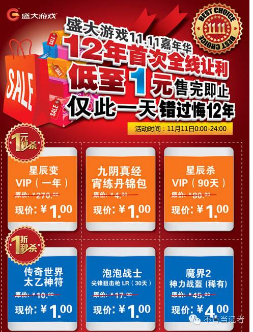 几个著名但未成气候的游戏双十一