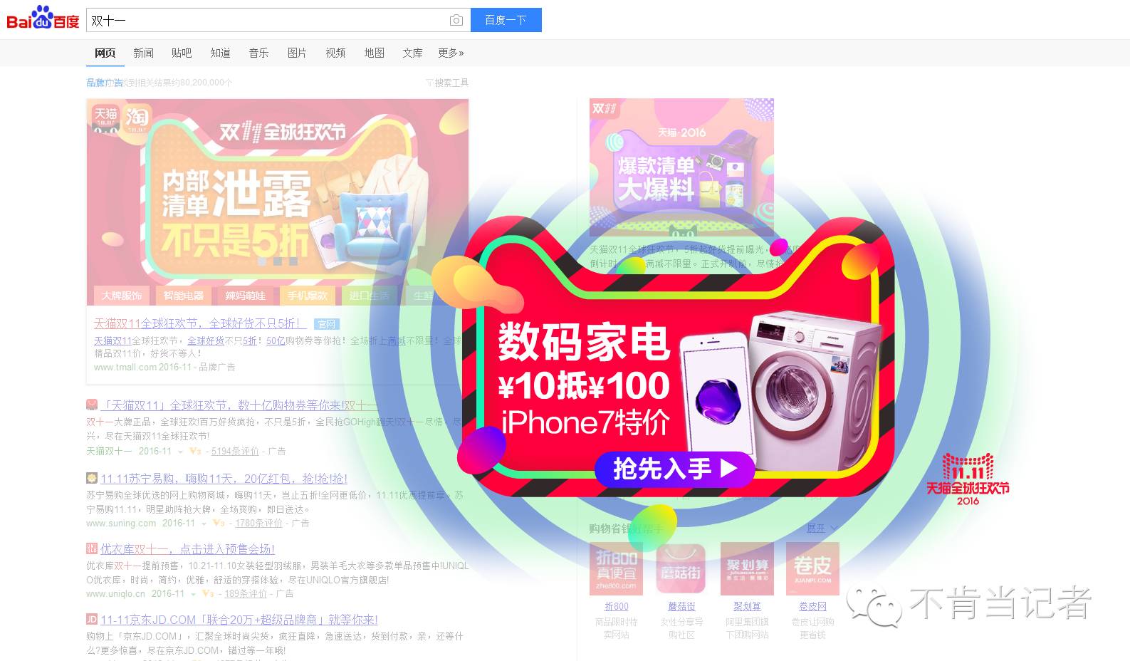 在去年天猫和京东就“双十一“的商标权归属对簿公堂,但对消费者而言似乎从来没在乎过其结果。因此,这个词到底是谁发明的也并不那么重要,同样对于几乎所有的电商甚至你朋友圈里的微商都可以利用这个期间进行一番或真或假的大促。当然,任何一个可被投放平的平台也不会仅接受某一家的广告费。
