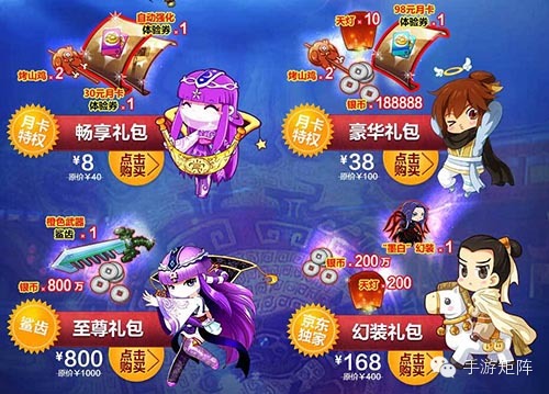 《秦时明月》的虚拟道具礼包登陆京东,的确是近期最值得关注的一个新推广模式,够新颖也具有可复制性。更重要的是,这种模式既给手游销售带来新的启发,还有开拓传统电商用户的可能性。目前来看,商城上只有打折促销的游戏道具礼包,不过今后是否还会有更深入的合作?比如内购货币上架、电商资源置换、触控其它产品是否也会上架、收入分成比例等等。触控内部人士对矩叔这些问题的答复是,暂时没这方面的考虑,把第一步迈上去,打开新局面就行。