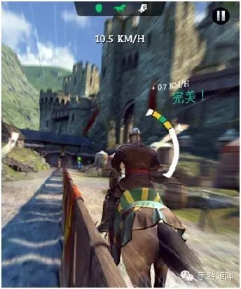 游戏的基本玩法就是比拼骑士的防御,速度和力量,防御影响玩家自身坚固度,速度由马匹决定,而最终速度取决于你出发时和加速过程中的表现,这里有一个小技巧,当一开始的3,2,1倒数结束后,在”出发”这2个字出现时,点击屏幕可以获得额外的速度加成,在行进过程中则需要注意当指针到达绿色区域时,点击屏幕可获得最高提速,太早或太晚点击都会影响骑士的冲锋速度,骑士的最大力量则由长矛决定,但是是否能击倒对手看的是玩家最后瞄准时的表现,在屏幕任意位置滑动手指,可以引导长矛瞄准指定目标,圆圈大小显示你离目标的距离,如果目标在被击中时变成绿色,系统会判定玩家完美命中,不过达成这项条件很难,一般情况下都是黄色圆圈,每场战斗结束的奖励判定规则都会被防御,速度,力量所影响。