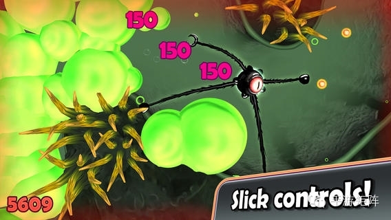 游戏采用了触屏操作,眼球怪共有四只触手,点击屏幕便可以朝相应位置伸出触手进行牵引,通过不断点击伸出触手进行移动。触手的伸缩速度与点击频率有关,想要快速、精准的移动,就看你的操作了!