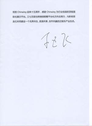 在此,ChinaJoy主办方汉威信恒非常感谢李逸飞先生对ChinaJoy展会的衷心祝贺,并由衷感谢三七互娱多年以来对ChinaJoy的大力支持!