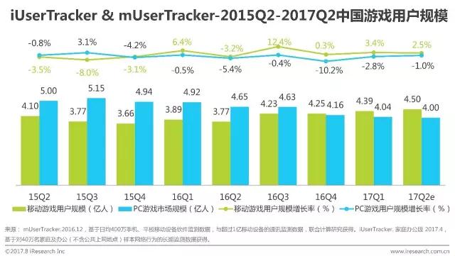 2017Q2中国网络游戏行业用户规模整体稳定,有从PC向移动转移的趋势
