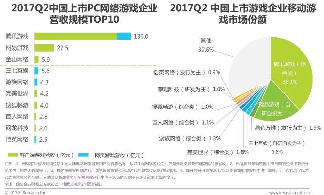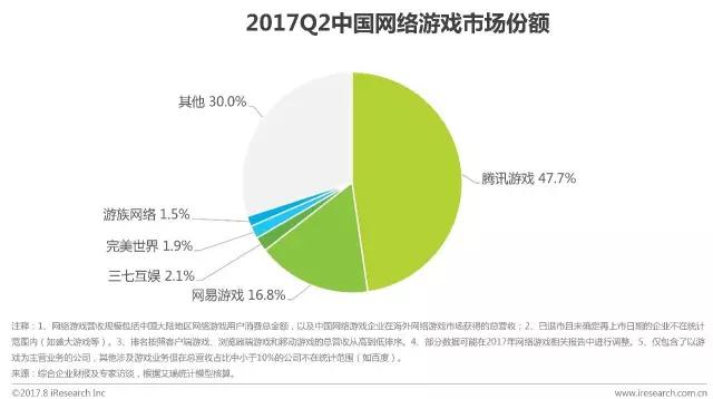 2017Q2中国网络游戏市场腾讯网易占比超六成