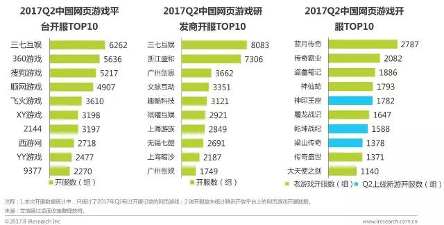 2017Q2网页游戏表现平稳,三七互娱依然占据网页游戏平台和研发双榜第一。