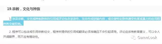 苹果针对appstore应用的审核标准第19条明确写到,“涉及宗教、文化或种族群体的引用或评论包含诽谤性、攻击性或狭隘内容,或会使特定群体遭受伤害或暴力的应用程序将会被拒绝。”
