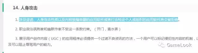 同时苹果审核标准第14条还规定,“涉及诽谤、人身攻击性质以及内容狭隘卑鄙的应用软件或者打击特定个人或组织的应用软件将会被拒绝。”