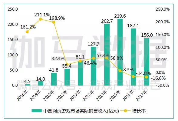 与移动游戏和客户端游戏的情况相比,网页游戏呈现连续下降状态。报告显示,今年中国网页游戏市场实际销售收入达到156.0亿元,同比下降16.6%,收入连续两年出现负增长。受用户需求改变、新产品减少等因素影响,网页游戏市场进一步萎缩,市场实际销售收入明显降低,用户数量减少。