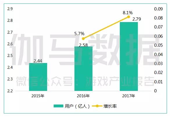 不过,与去年相比,中国游戏用户数量增幅并不明显。报告显示,中国游戏用户规模达到5.83亿人,同比增长3.1%。综合2014年至2017年的用户数据来看,中国的游戏用户规模增长速度已经处于较低的状态,游戏用户数量已经趋于饱和。