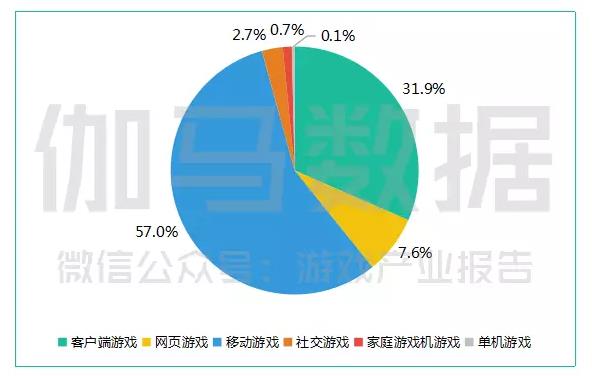 如果聚焦到中国游戏市场收入的细分领域,会发现移动游戏仍然是中国游戏市场收入的最重要构成,而且有愈演愈烈的趋势。报告显示,今年的中国游戏市场中,移动游戏市场实际销售收入1161.2亿元,份额继续增加,占57.0%;客户端游戏市场实际销售收入648.6亿元,份额减少,占31.9%;网页游戏市场实际销售收入156.0亿元,份额大幅减少,占7.6%;家庭游戏机游戏市场实际销售收入13.7亿元,份额有所增加,占0.7%。