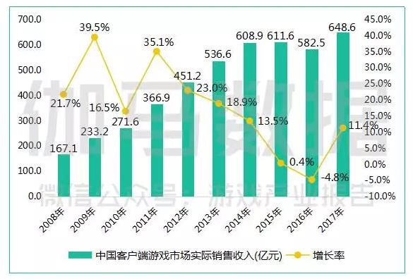 除了移动游戏的收入喜人外,今年客户端游戏的收入情况也出现了一定的回暖迹象。报告显示,中国客户端游戏市场实际销售收入达到648.6亿元,同比增长11.4%。