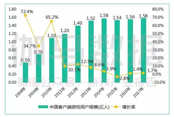 在用户方面,近几年中国客户端游戏的用户数量已经趋于平稳,今年的波动也依然不大。报告显示,今年中国客户端游戏用户规模达到1.58亿人,同比增长1.7%。