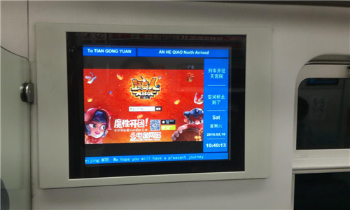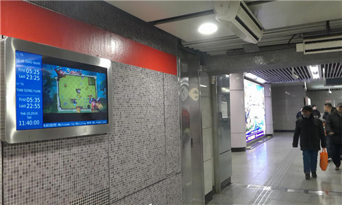过年期间的北京城也是游戏展出的绝佳地点,此次在北京地铁中进行展示的则是4号线、14号线和大兴线,播放期间期间日均人流量为1272万,播出终端数为8699块,这包含17寸的列车屏幕以及42寸的站台站厅屏幕。