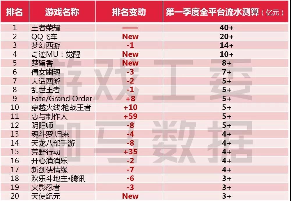 《王者荣耀》流水超40亿元 前五位置新游占据三款