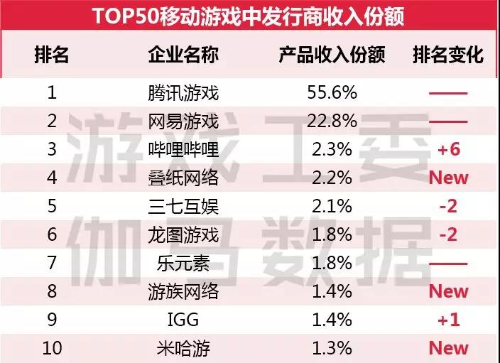 腾讯、网易新作补位占比提升,两巨头市场份额近八成