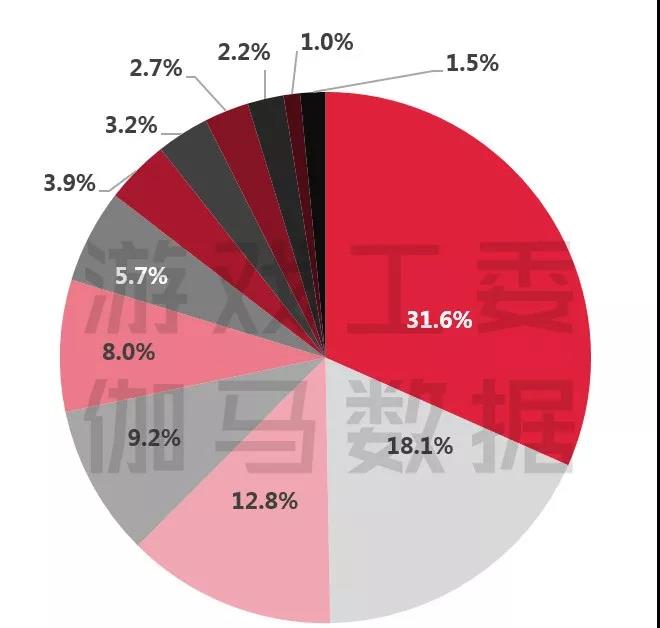 在移动游戏发行商排名中,相比于2017年10-12月,腾讯网易发行游戏收入占比近八成,市场占有率进一步提升。