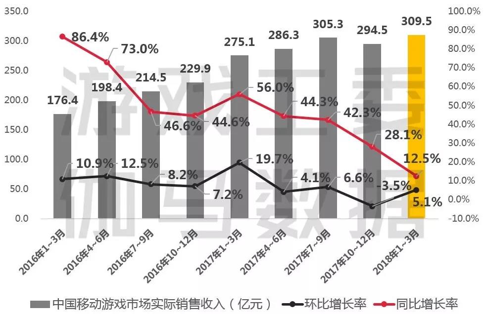 以下数据及观点摘自《2018年1-3月移动游戏产业报告》: