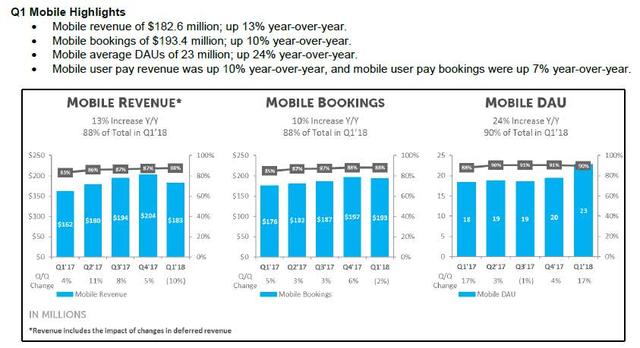 Zynga日前发布了2018财年第一季度的财务报告,报告显示公司第一财季收入为2.082亿美元,相比2017财年第一季度的1.943亿美元增长了7%,净利润则为560万美元,而去年同期还是950万美元的亏损,调整后的息税折旧摊销前利润(EBITDA)为2660万美元,同比增长59%。另外,该公司第一财季的手游收入为1.826亿美元,同比增长13%,手游预订收入为1.934亿美元,同比增长10%。