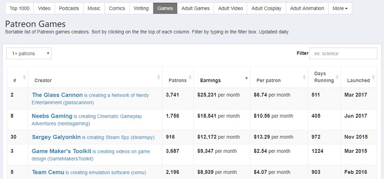 根据数据网站Graphtreon提供的数据,截至7月25日,Patreon已经吸引了超过8000名游戏开发者入驻平台,并带来总计8143款游戏,同时还有非常多的独立画师、艺术家进驻,Patreon在海外的火爆也延伸到了国内市场,在百度贴吧中,关于Patreon非常常见的问题就是“如何赞助自己喜欢的画师、或者游戏”,同时伴随而来的还有“赞助后、信用卡每月自动扣费如何取消”这类问题。