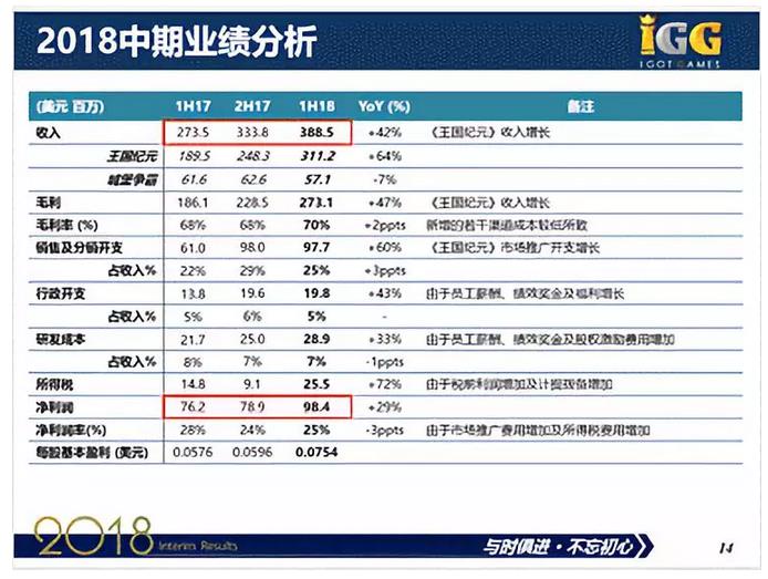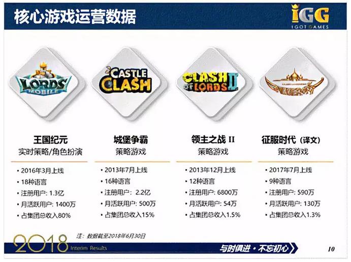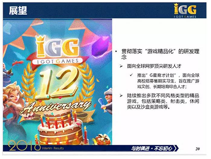 通过两年半的积累,IGG将在2018年下半年发布多款游戏。IGG致力于游戏精品化,以提升作品的竞争力度。《城堡争霸》从立项到上线共6个月时间,《王国纪元》从立项到上线共1年半的时间,现在的游戏开发周期稳定在2年至2年半左右。